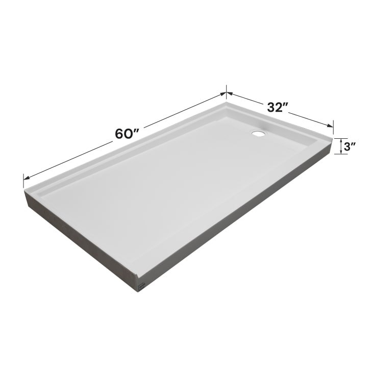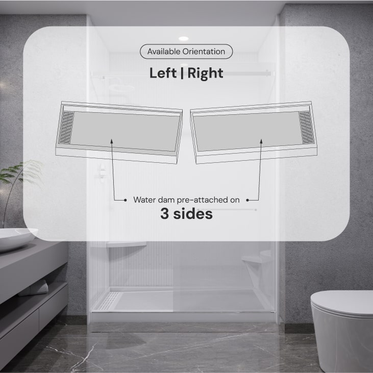 OFFEST TRENCH DRAIN AT 4”. Pre attached 1” Water Dam on 3 sides. Available in Left, Right and Universal Orientation.